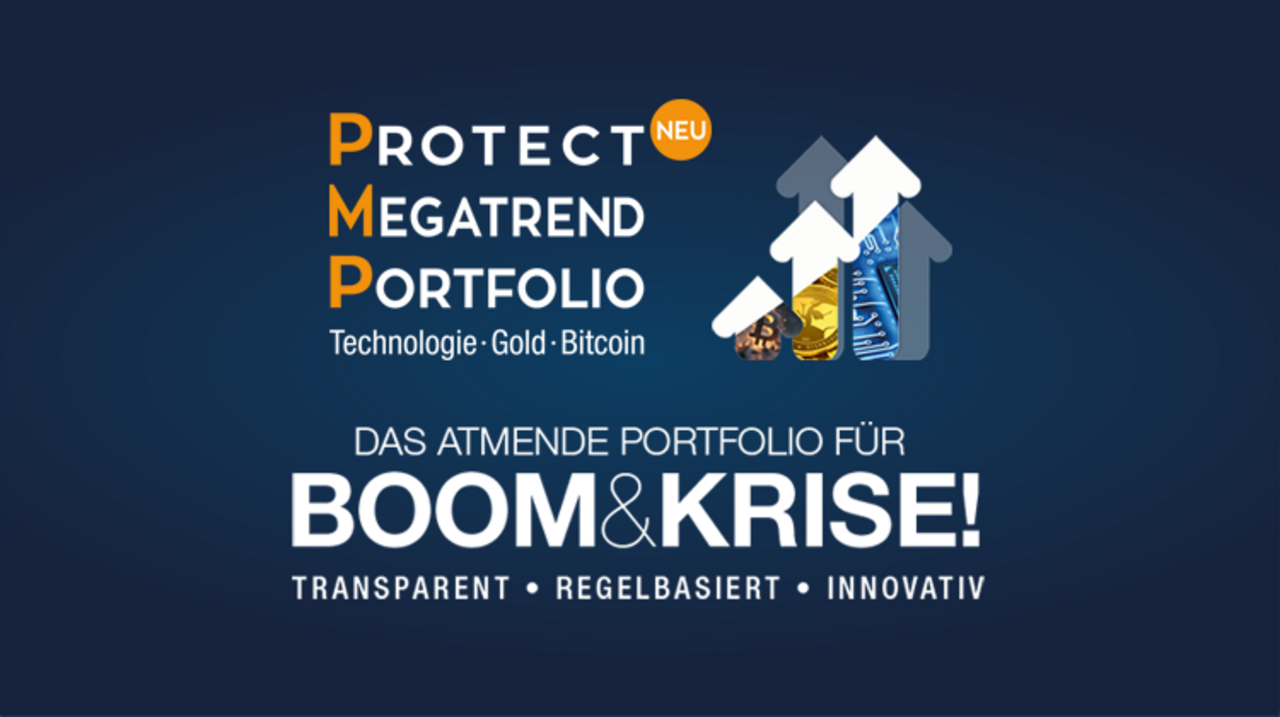 Das neue Protect-Megatrend-Portfolio (PMP) kombiniert Technologie, Gold und Bitcoin in Ihrem Depot! Dabei sind Sie hier immer in allen drei Assetklassen investiert – im Boom mit einem hohen Anteil Technologie und in der Krise mit einem hohen Gold-Anteil. Die Teilnahme ist bereits ab 10.000 Euro möglich, und ab 500.000 Euro genießen Sie mit PMP-PREMIUM zusätzlich alle VIP-Vorteile. Jetzt das einzigartige PMP zum Vermögensaufbau nutzen!